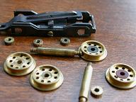 先台車は一旦分解し、先輪輪芯を黒く塗ります。