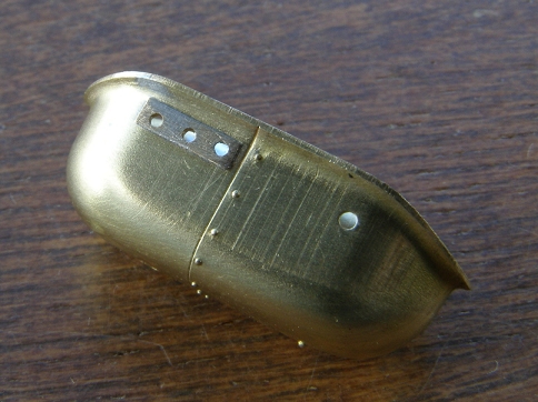 ↓帯金をドームにハンダ付けします。その後、取り付け穴を開けます。