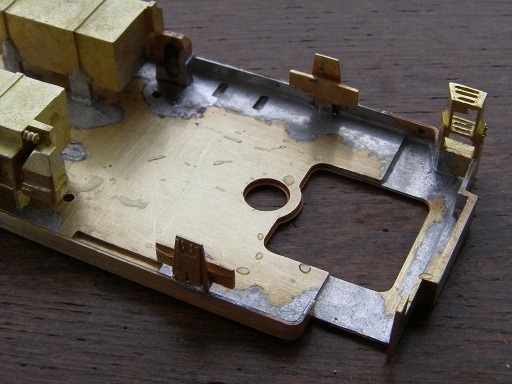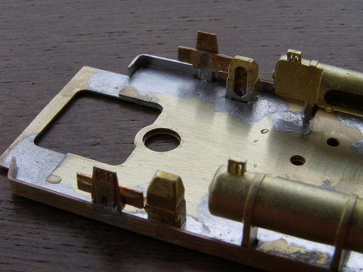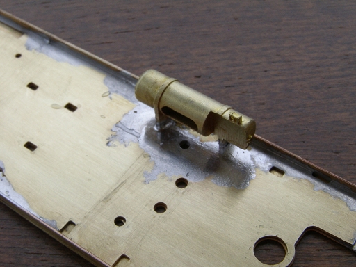 ↓床板の角穴に合わせてハンダ付け。