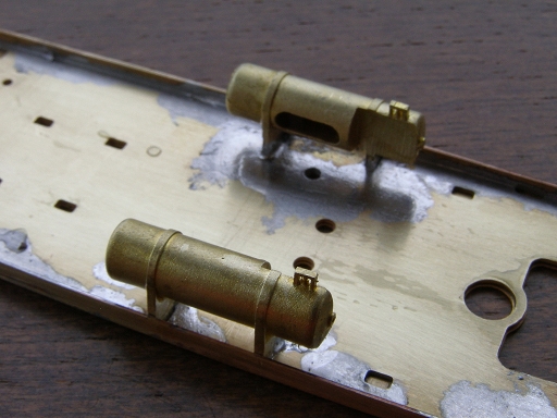 ↓側受けは台車取り付け穴に合わせて、砂箱はその隣です。