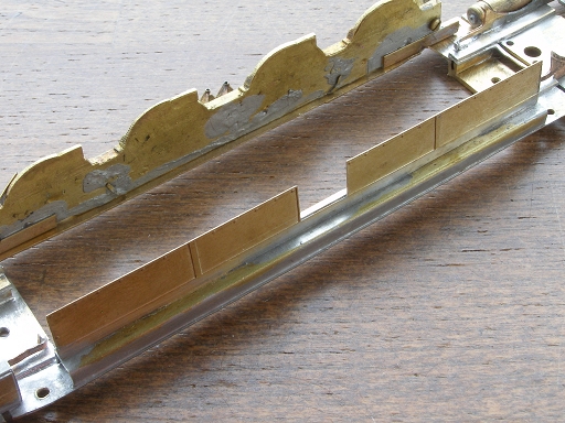 ↓ここに取り付ける砂箱に、帯金をハンダ付けします。
