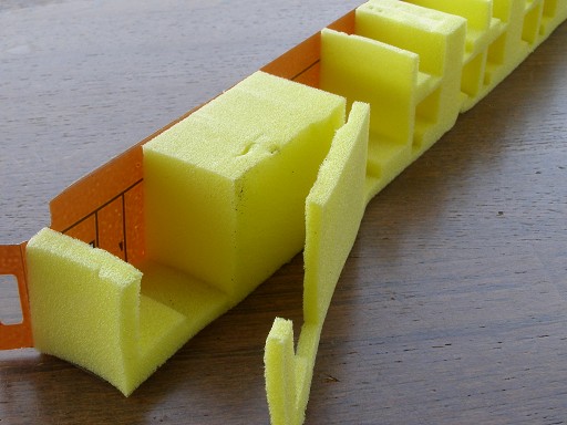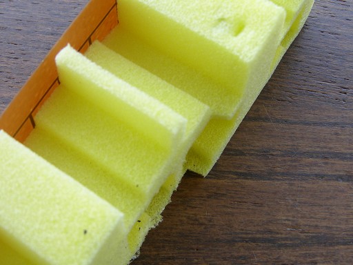 ↓スポンジ製のシート部も、幅を狭くするためカットします。