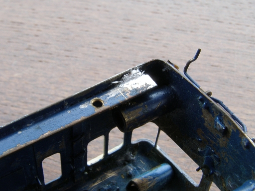 ↓前面窓下手すりは、オリジナルの取り付け穴が埋めてありません。