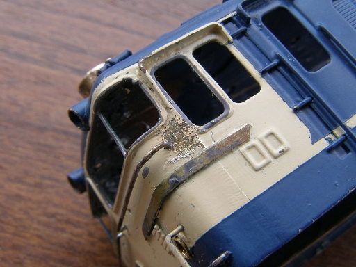 ↓前面窓下手すりが、サイド部分の取り付けハンダが