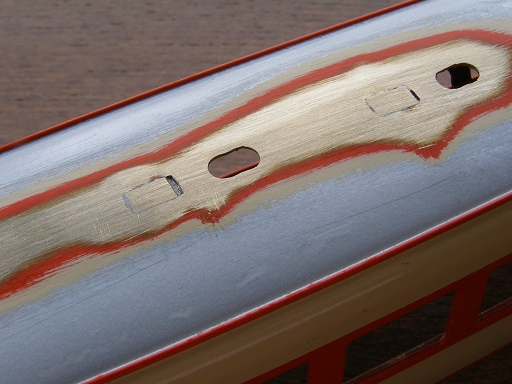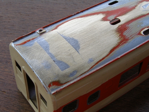 ↓屋根表面を研磨しておきます。