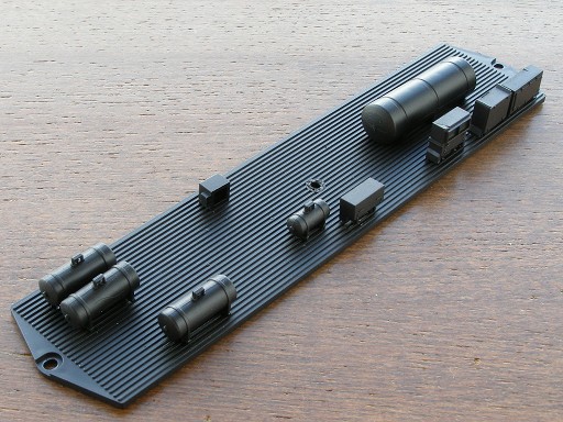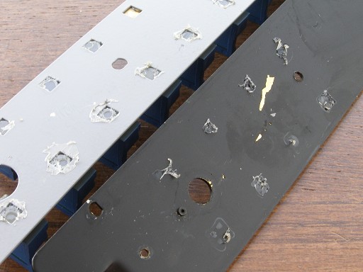 ↓パーツの床下機器取り付け板に取り付け穴を開けます。