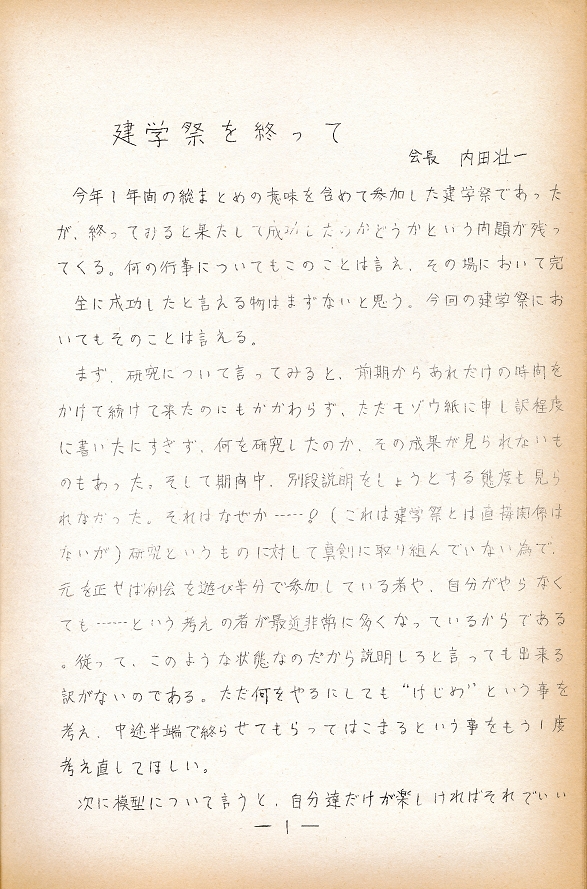 ↓トップに掲載された当時の会長内田氏の記事。かなり硬めの内容。