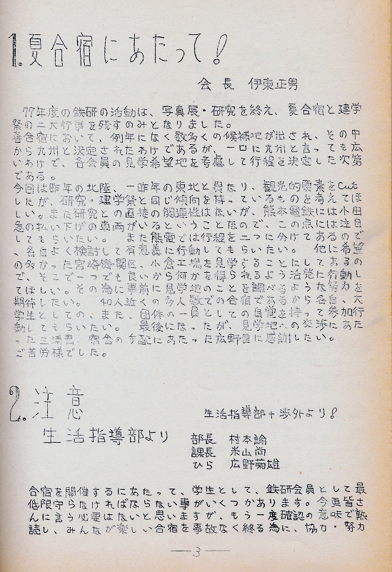 東海大学鉄道研究会の歩み?? 合宿用ガイドその他 その3
