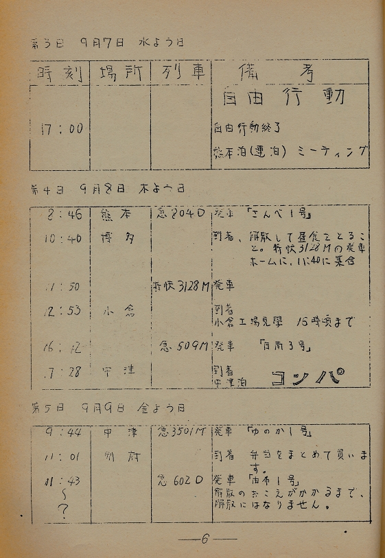 ↓行程表の一部。