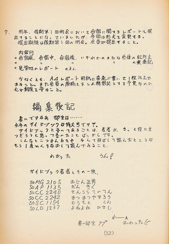 ↓編集後記。50生主体で作成したようです。